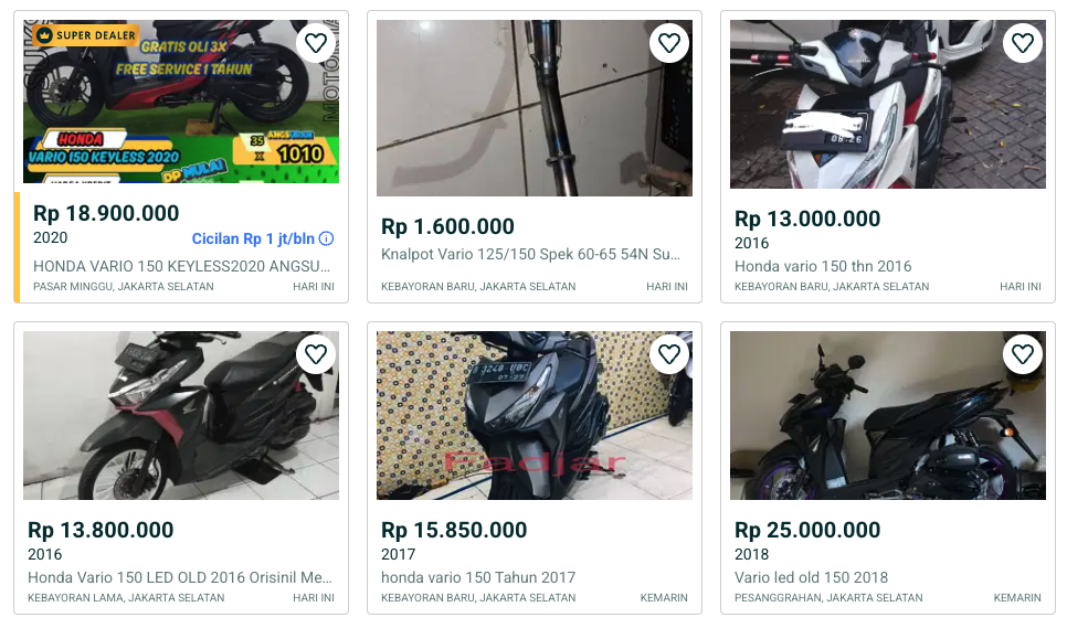 - Pilihan Luas – Ribuan listing Vario 150 dari seluruh Indonesia